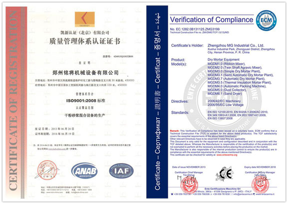 我公司生產的設備已獲得ISO9001國際質量認證及歐盟CE認證: